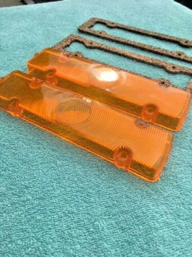 This is a PAIR of VINTAGE-Style, Early Reproduction AMBER Parking Light Lamp / Turn Signal Indicator Lenses WITH GASKETS.