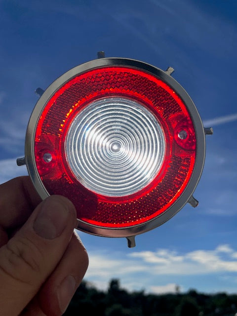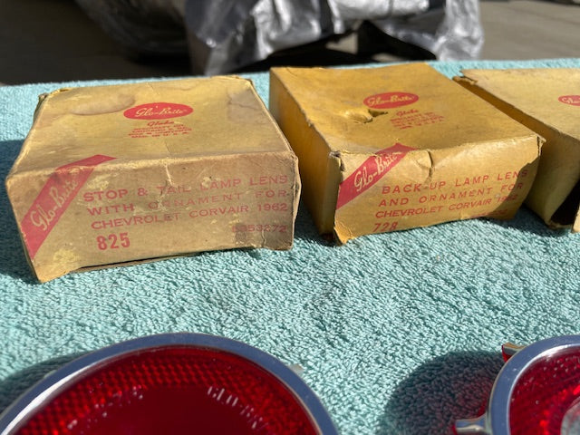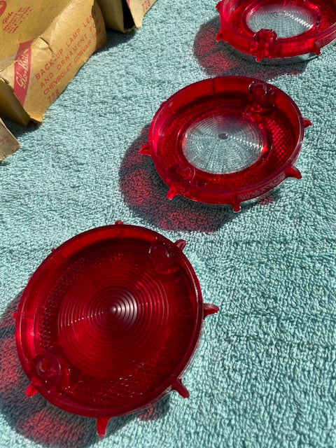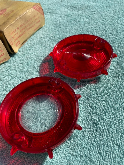 This a set of Vintage, ORIGINAL, USA Glo-Brite made, New Old Replacement Stock (N.O.R.S.) Tail Light and Back Up Light Lenses